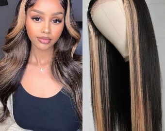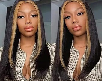 Highlight Skunk Stripe Hair Straight 13 4 Lace Front Human Hair Wig Wigfever